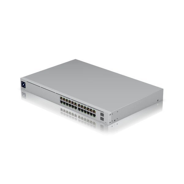 Ubiquiti UniFi 24 Port Managed Gigabit Switch Pro Gen2, 8x Gigabit RJ45 802.3bt PoE++ ports, 16x Gigabit RJ45 802.3at PoE+ ports, 2x 10G SFP+ ports, Layer 2 and Layer 3 features, 400W maximum PoE power, UniFi SmartPower RPS DC input, Near-silent cooling, 1.3″ touchscreen display, Managed by UniFi Network Controller, Rack Mount, 2 Year Warranty
